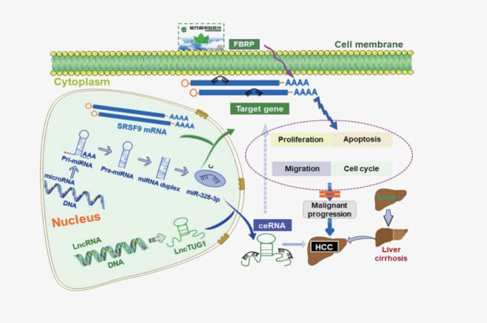 中國(guó)中醫(yī)科學(xué)院中藥研究所張彥瓊研究員及其團(tuán)隊(duì)通過(guò)研究,發(fā)現(xiàn)了一IncRNA-TUG1-microRNA-328-3p-SRSF9 mRNA軸參與HCC(肝細(xì)胞癌)的發(fā)生。