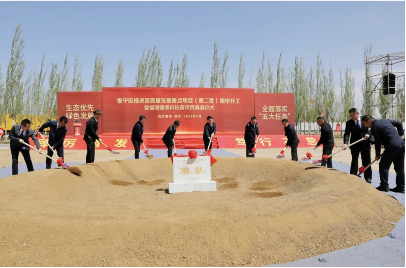 5月15日上午,集寧區(qū)舉行推進(jìn)高質(zhì)量發(fā)展重點(diǎn)項(xiàng)目(第二批)集中開(kāi)工暨福瑞健康科技園項(xiàng)目奠基儀式。(圖/郭文婕)